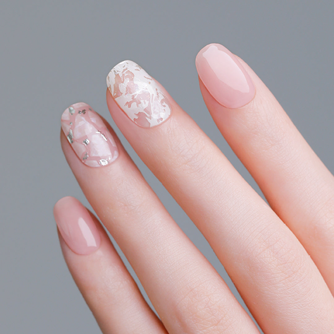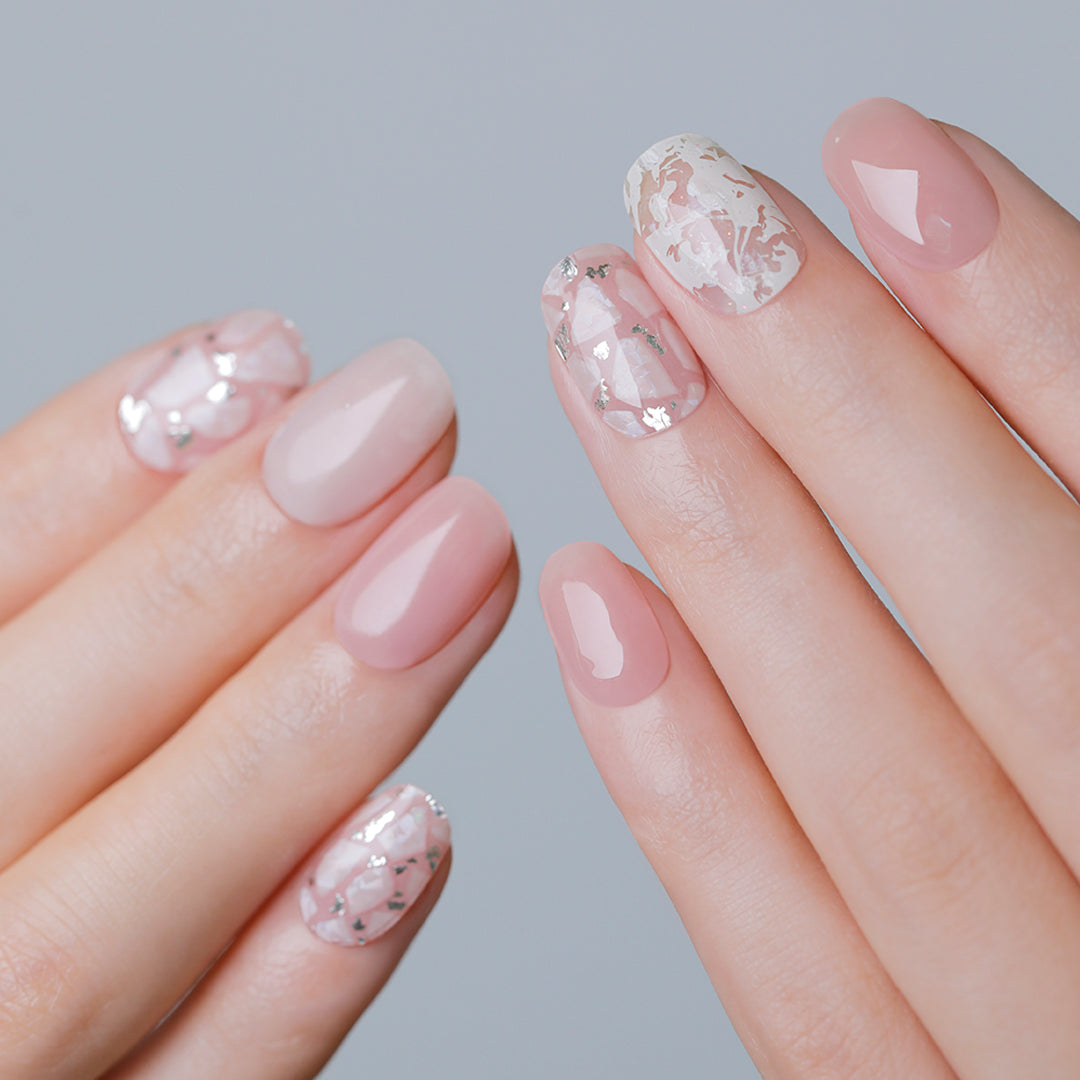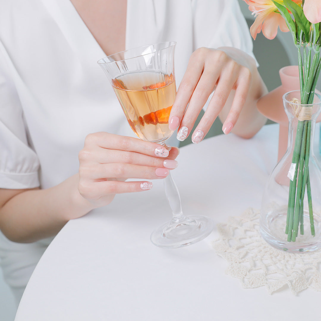 【japan edition】【RIE NOFUJIコラボ】肌なじみがよく活躍度の高いピンクネイル。人気ネイルサロンとコラボしたシンプルで上品なデザイン。肌になじむ、ちゅるんとした淡いピンクと白の組み合わせは清潔感があり、手もとを明るく見せます。季節やシーン、ファッションを問わず使える、万能ネイルです。