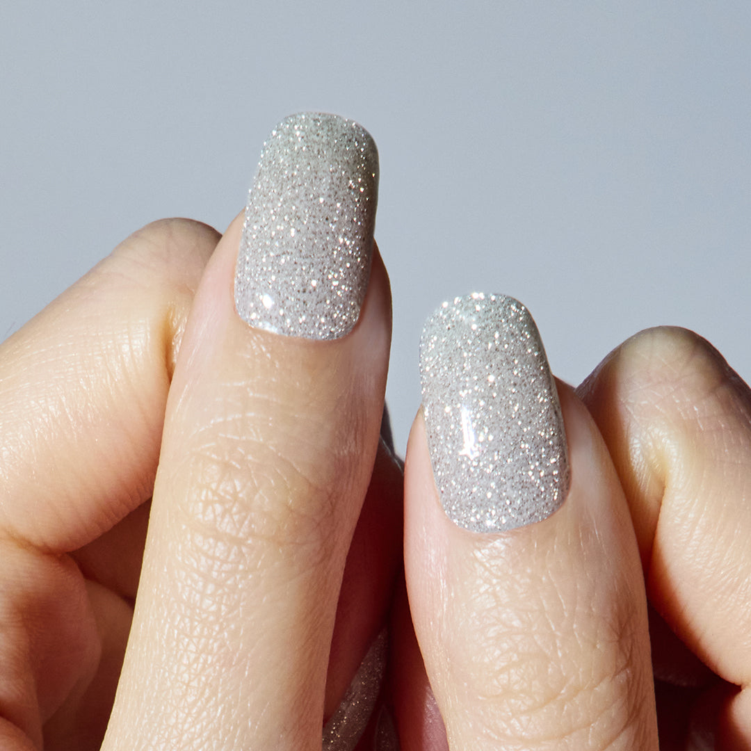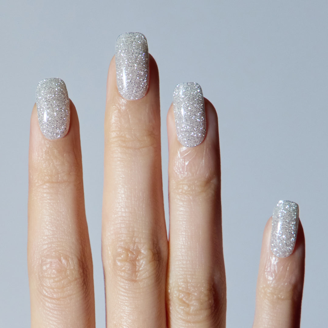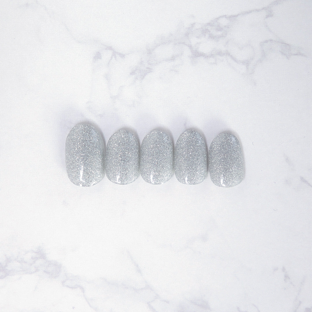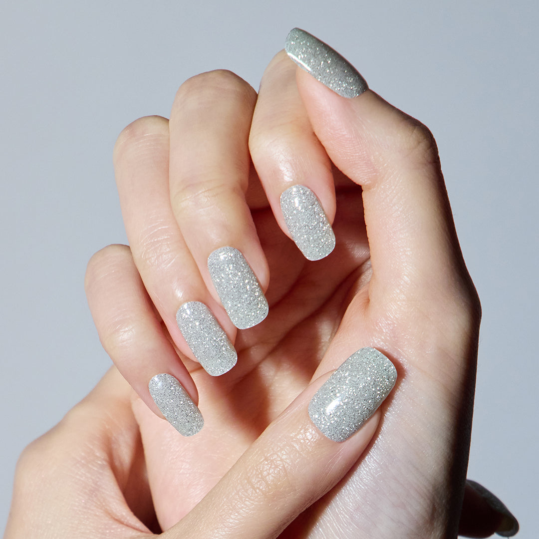 ホワイトのベースにシルバーのフラッシュグリッターを贅沢に敷き詰めたデザイン。光にかざすと本物のダイヤモンドのように輝き、角度によって表情を変えながら、手もとに格別の高級感を添えます。華やかなパーティーはもちろん、デイリーのさりげないアクセントとしても活躍。圧倒的な存在感とまばゆいきらめきで視線を引き寄せ、洗練さを印象づけます。