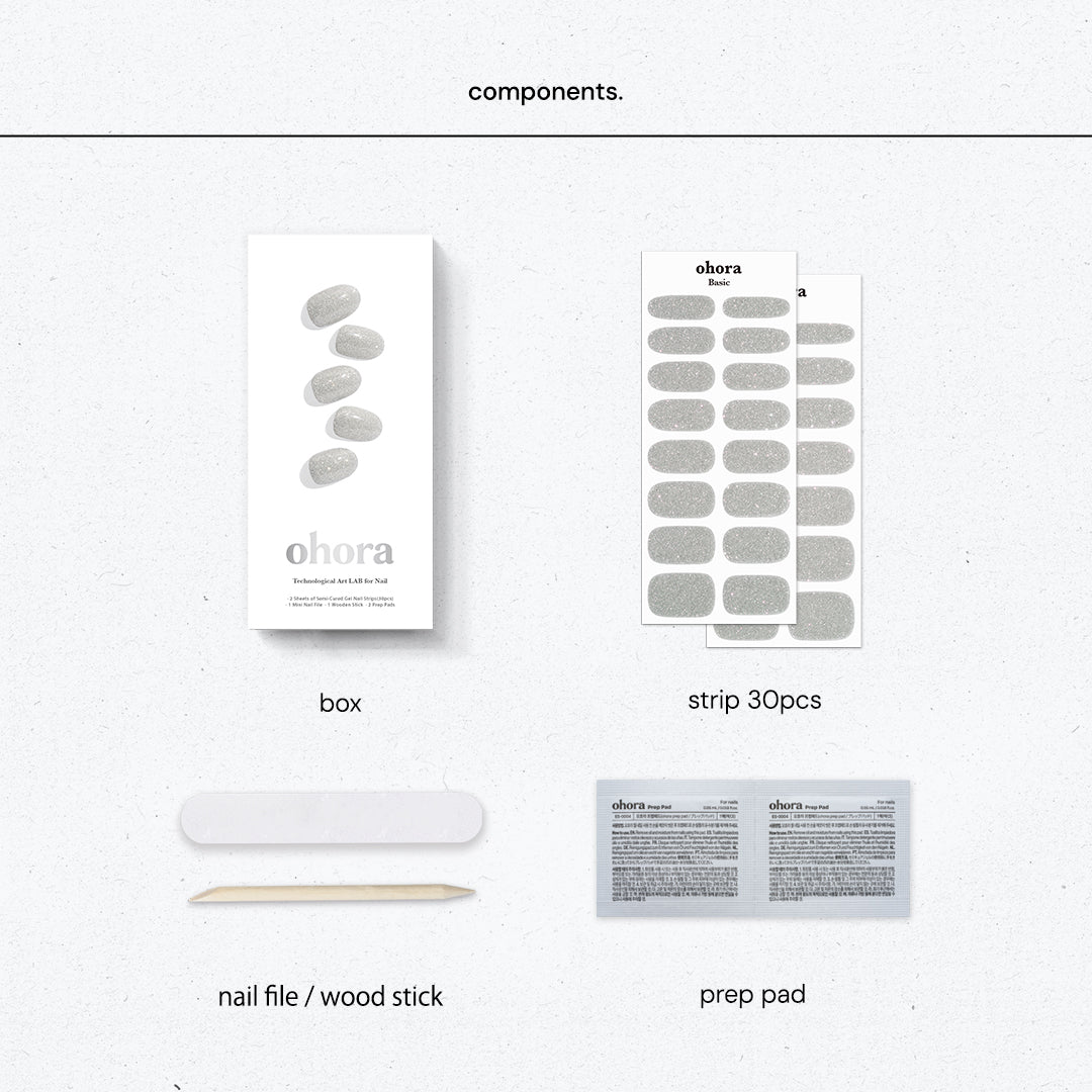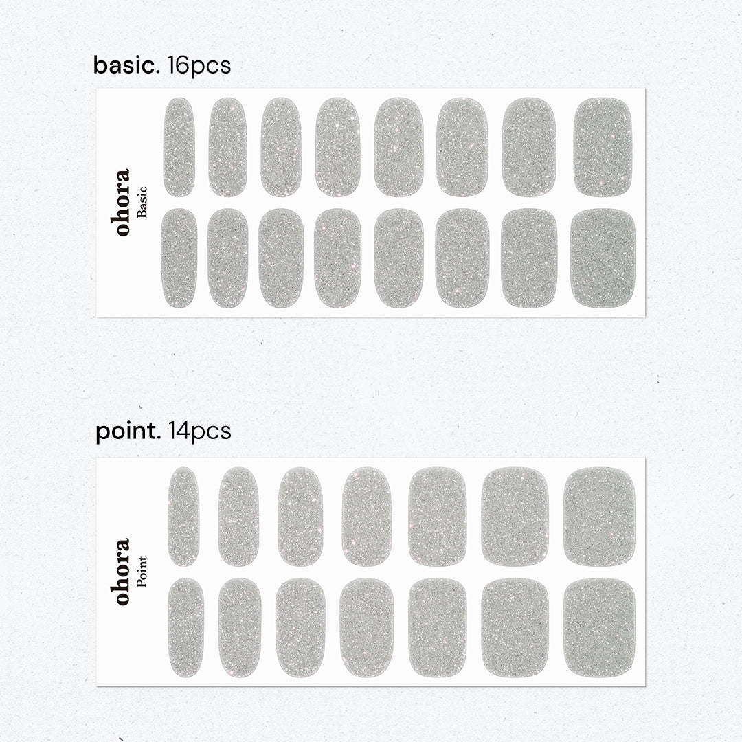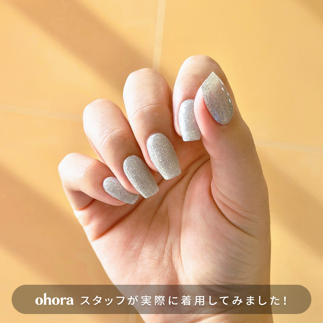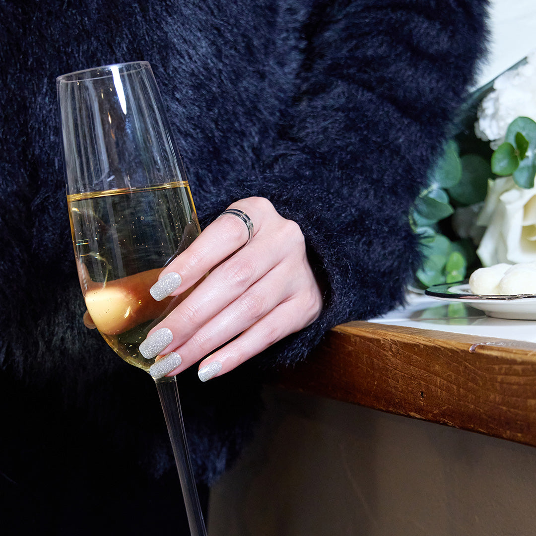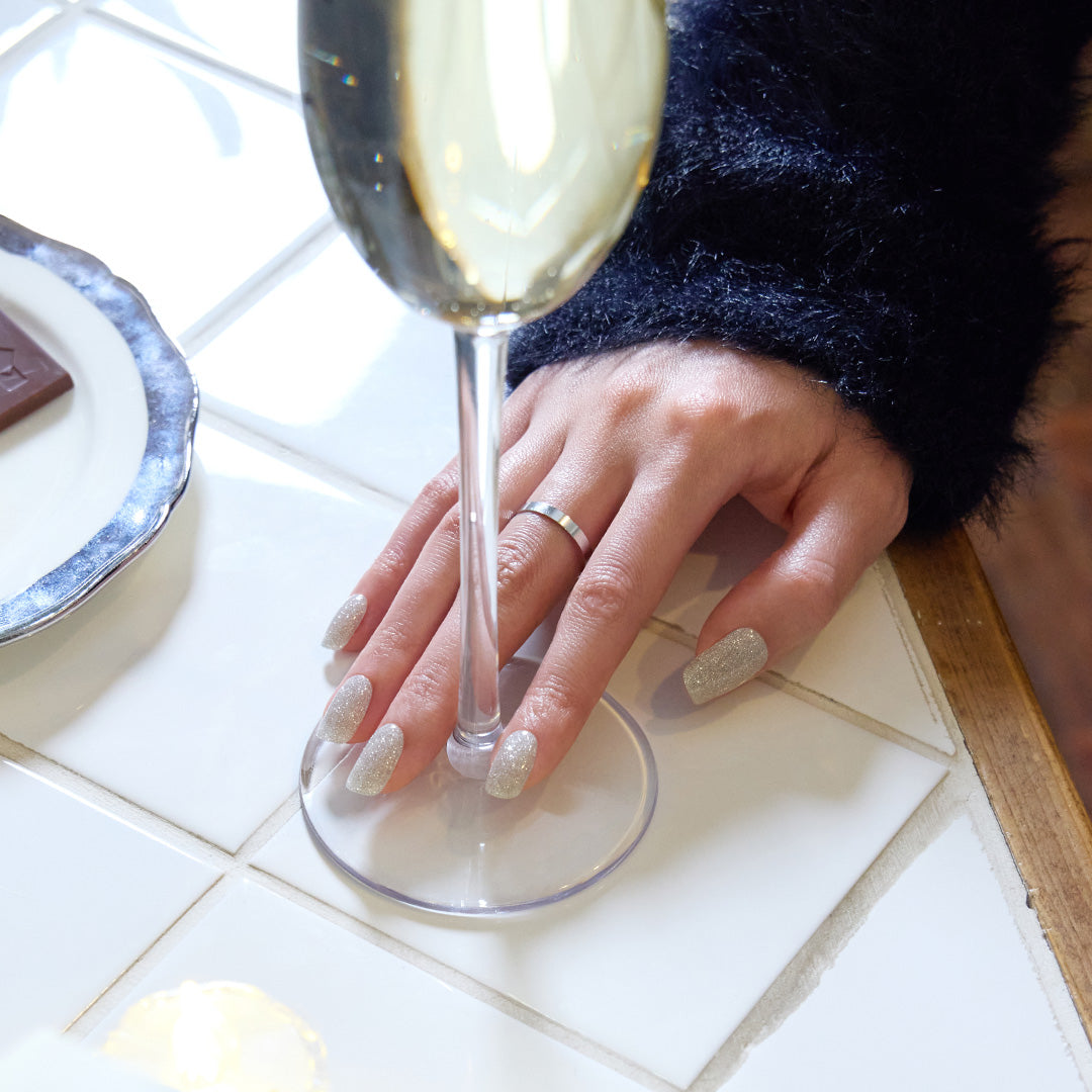 ホワイトのベースにシルバーのフラッシュグリッターを贅沢に敷き詰めたデザイン。光にかざすと本物のダイヤモンドのように輝き、角度によって表情を変えながら、手もとに格別の高級感を添えます。華やかなパーティーはもちろん、デイリーのさりげないアクセントとしても活躍。圧倒的な存在感とまばゆいきらめきで視線を引き寄せ、洗練さを印象づけます。
