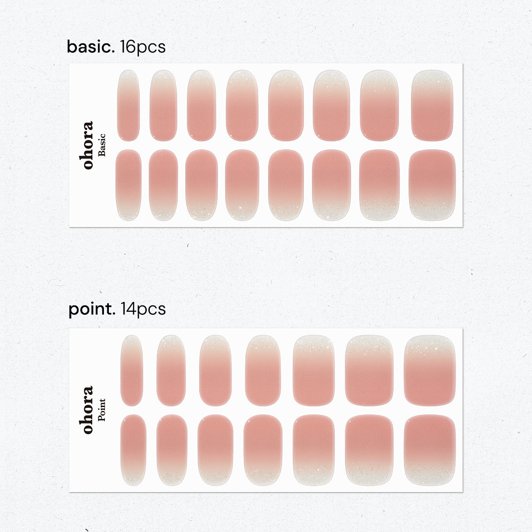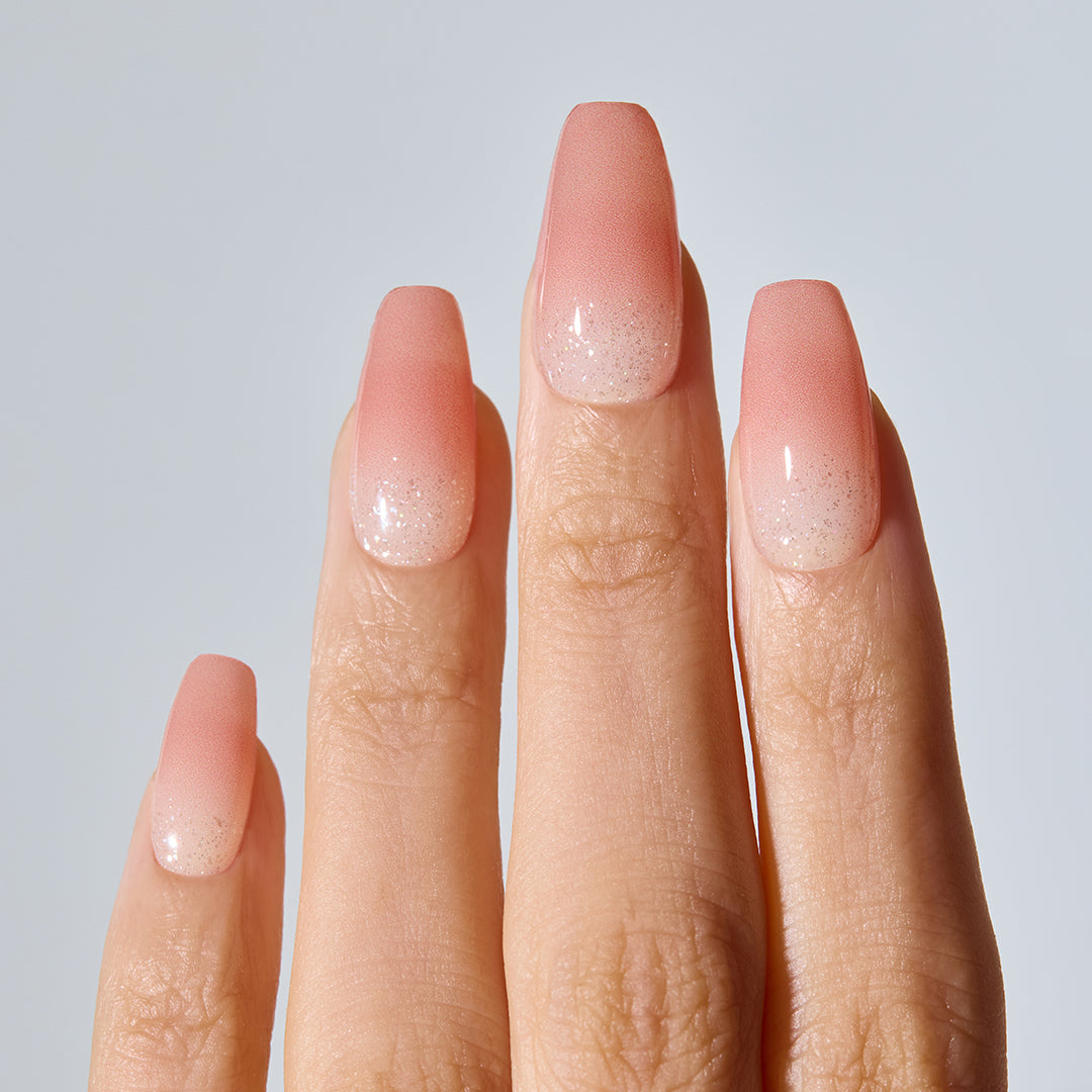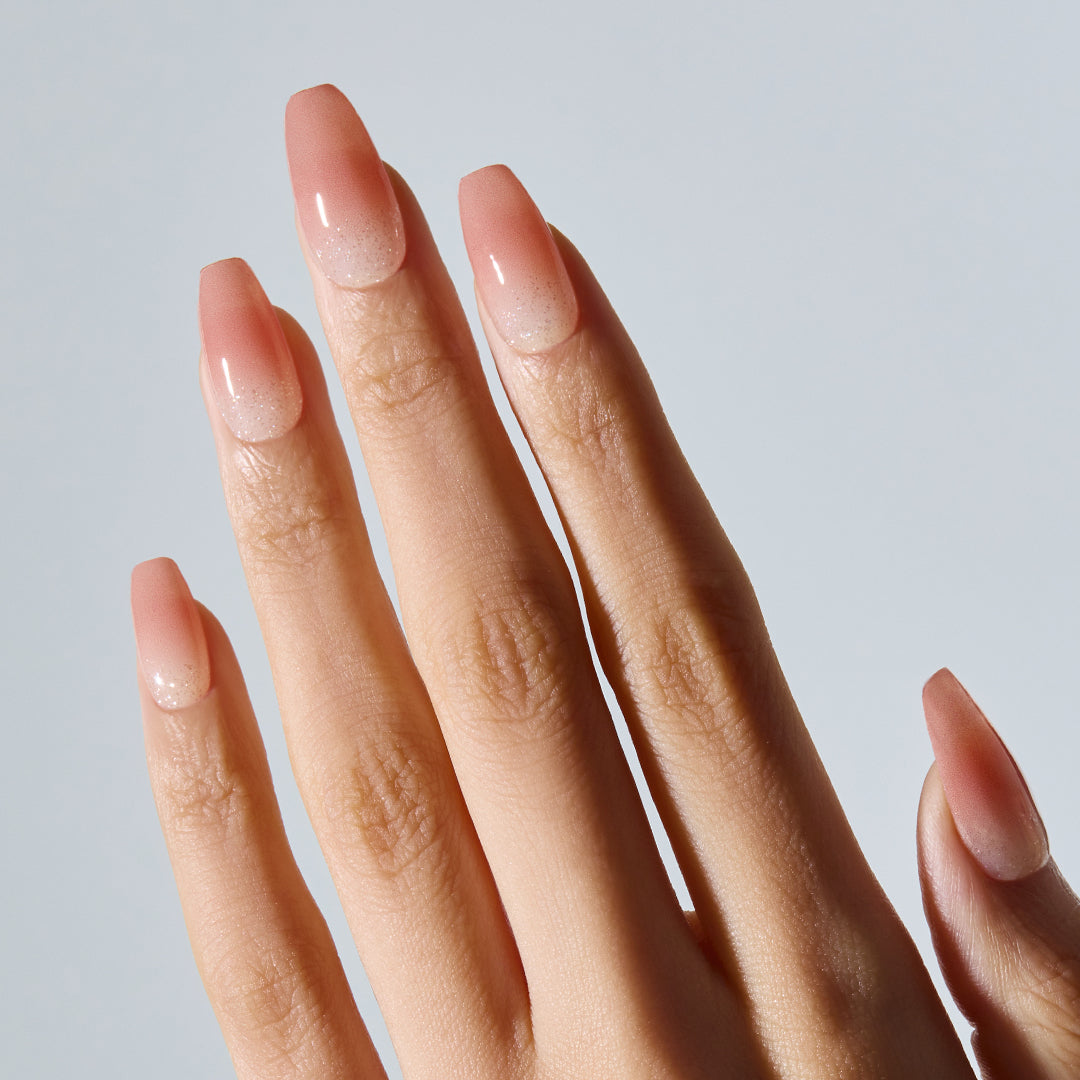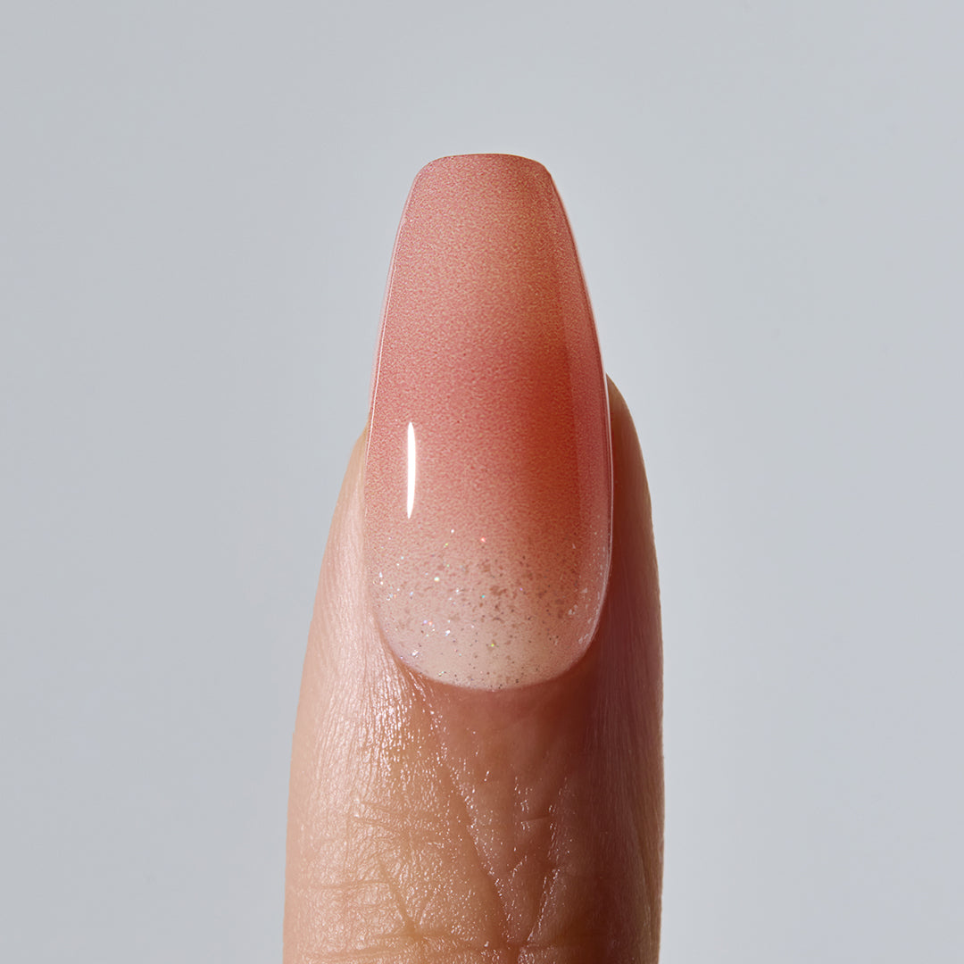 やわらかに広がるローズカラーに、オパール色の繊細なグリッターが重なり、指を動かすたびに上品にきらめきます。華やかさよりも静かな美しさを追求し、シーンを選ばず活躍。日常のふとした瞬間に、小さな特別感を添えてくれます。