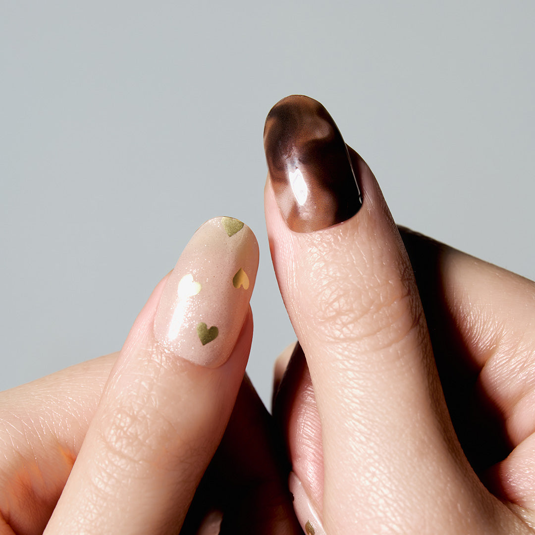 濃厚なチョコレートがなめらかに溶け出す瞬間をイメージした、ビター&スイートなデザイン。深みのあるブラウンのマーブルにゴールドの組み合わせがシックなムードをつくり、やさしい輝きで華やかさを添えます。大人の洗練とロマンチックな魅力が同居。どの指にのせるかでも印象が変わり、さまざまな雰囲気を楽しめます。