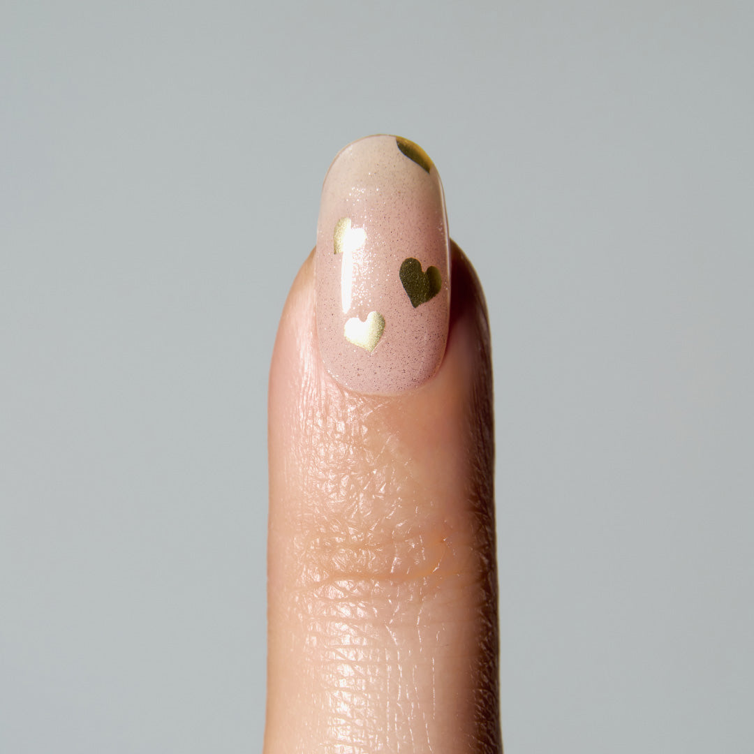 サイズを合わせて貼る爪のサイズに合うシールを選び、透明フィルムをはがしてキューティクルラインから少し間隔を空けて貼る。爪の端までていねいにフィットさせる