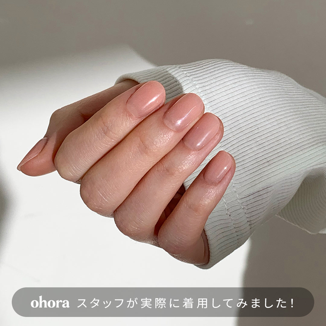 自然な血色感をもたらすソフトピーチは、肌なじみのよい万能カラー。指先本来の美しさを引き立て、ナチュラルで洗練された印象へと整えます。清潔感のある第一印象と、やわらかく端正なムードが心地よく調和。デイリーからフォーマルまでシーンを選ばず、ほかのネイルとも合わせやすい、頼れる一色です。
