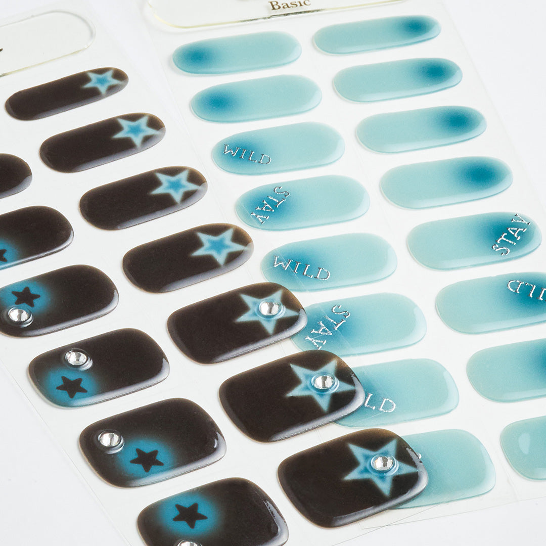 シールを爪に貼り付けたあとは、必ずジェルランプでかためてください。
