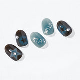 ダークブラウンとブルーのコントラストに、スターモチーフとシルバーのレタリングが遊び心を添え、自由と個性を感じさせるデザイン。星のオブジェとクリスタルストーンがアクセントとなり、洗練されたカラーを引き立てます。ユニセックスなストリートスタイルを完成させ、デイリーからフェス、パーティーまで、幅広いスタイルにマッチします。