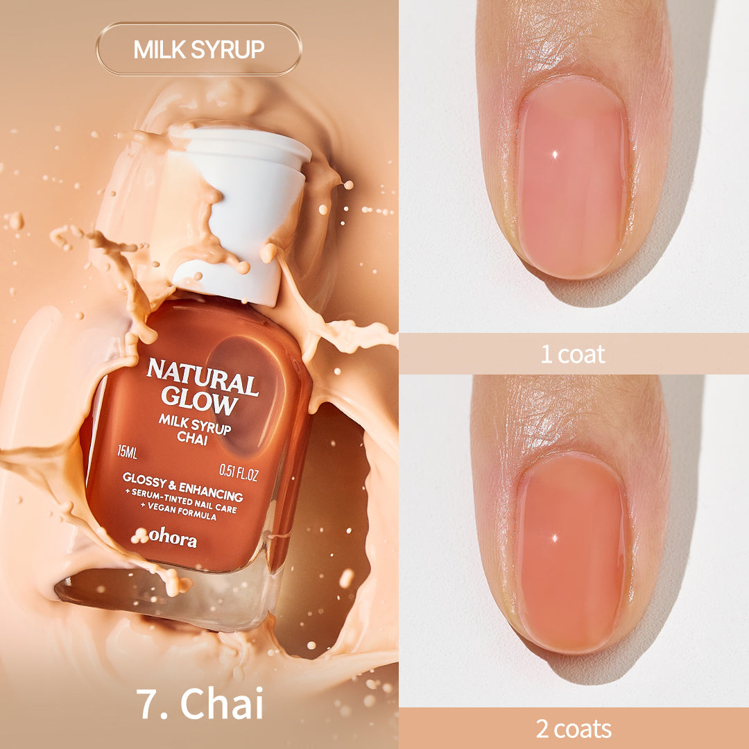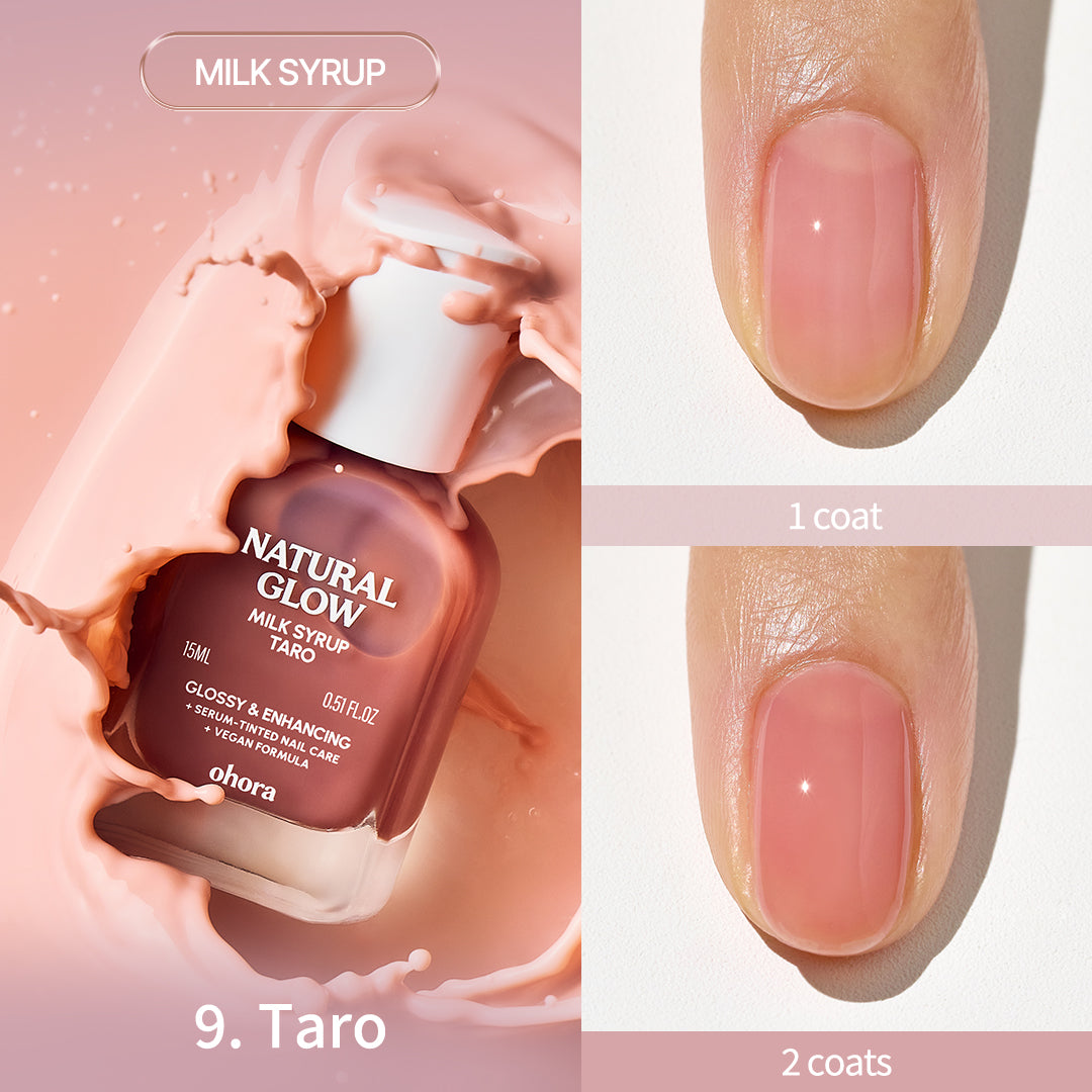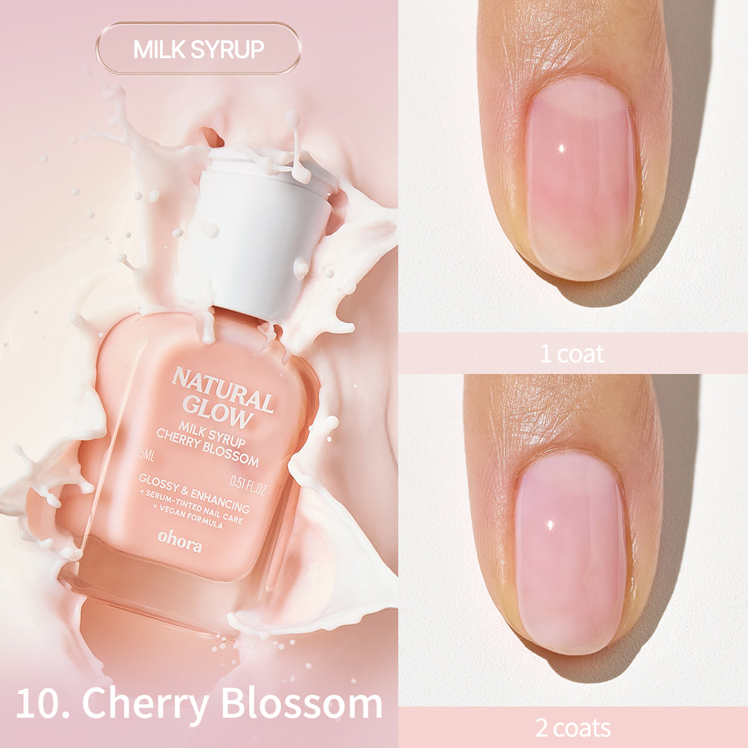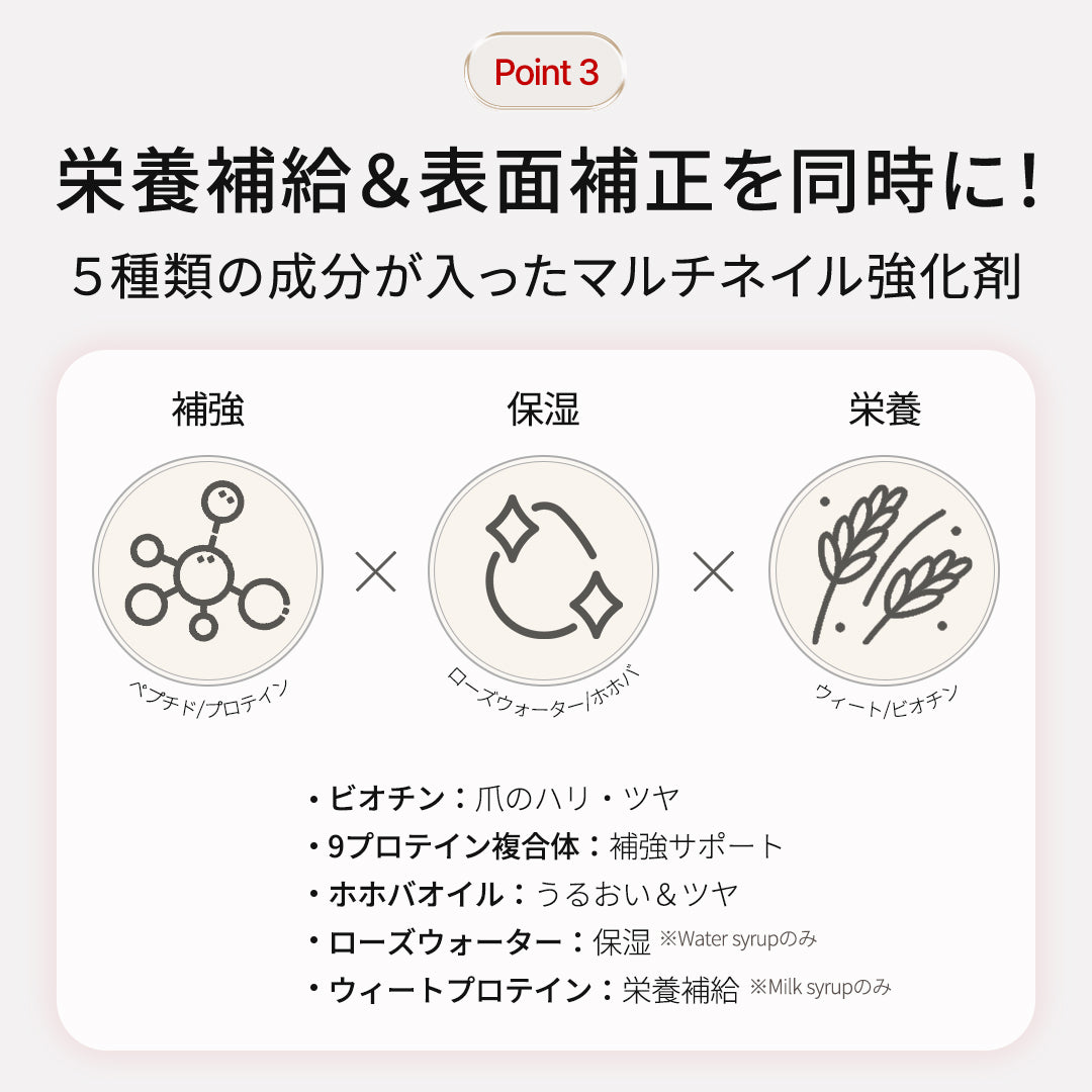 ・ミルクシロップタイプ(6種):爪の自然なトーン補正とカバー力がありながら、うるおいをしっかりと補給。爪のカバー力も求めたい方、優しくトーンアップした仕上がりがお好みの方におすすめです。