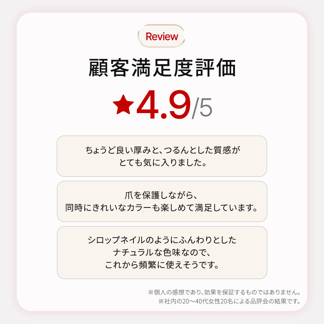 爪本来のツヤと美しい輝きを引き出しながら、自然に馴染むカラーで彩ります。